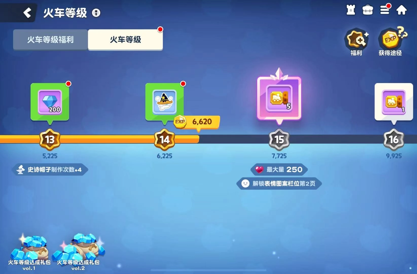 游戏里获取升级经验的方式不止爬塔一种,像完成世界地图探索、参与讨伐战等都能获得。火车等级提升后,别忘了点击主界面左上角的头像领取升级奖励。另外,松饼塔的升级也很关键,毕竟无论是挑战高层爬塔还是参加讨伐战,都要求松饼塔达到对应的等级才行。