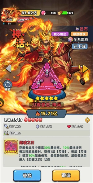 核心优势:吕布4星解锁强力技能,搭配齐天大圣的爆发,变异人抗伤,治疗续航,辅助增伤,完美应对最终尸潮与终极BOSS。