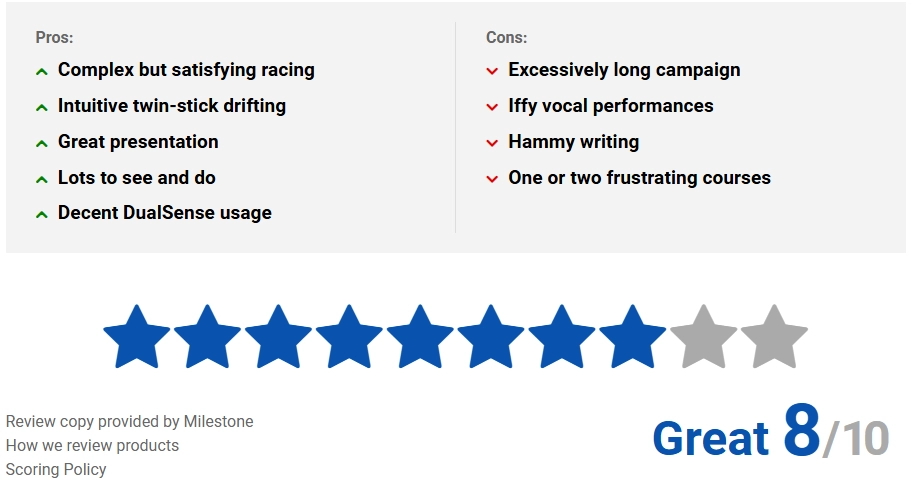 若要用一句话概括《Screamer》,大概就是——把《疾驰残影》与Crunchyroll动漫订阅关进同一房间封存一年,最终诞生的产物。它画面夺目、结构沉稳,是款极具挑战性的街机赛车游戏,风格鲜明且自成一派。不过它也存在一些问题:最曲折的赛道几乎消解了高速驰骋的快感,部分赛车操控起来比其他车型更显飘忽,锦标赛模式的难度曲线有明显缺陷,那些情感过剩的动漫美男形象也很快令人审美疲劳。但不可否认的是,凭借细腻的双摇杆操作与出人意料的复杂战斗系统,这款游戏总能让你沉浸其中、无暇他顾。而高度自定义的快速比赛模式与四人分屏功能,也让它成为朋友聚会时颇为亮眼的娱乐选择。