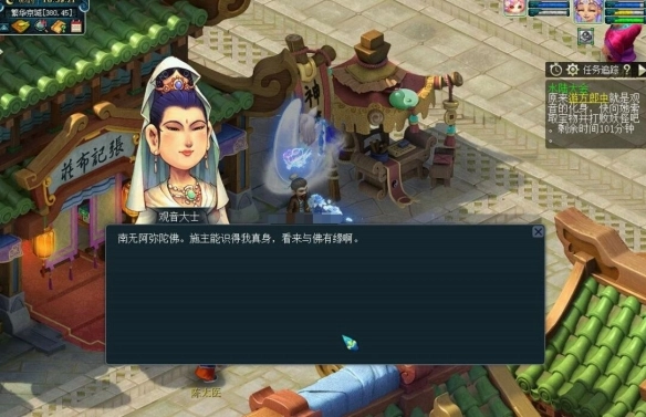 2、前往繁华京城(428.58)坐标处等待任务,待出现观音幻化的提示后,再点击NPC(观音大士)。