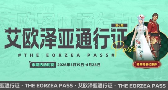 「艾欧泽亚通行证」第七期已限时开启!全新通行证活动正式上线!在本次活动中,冒险者完成每日任务即可获取经验值提升通行证等级,从而解锁「管弦乐琴乐谱:神龙见尾(交响乐版)」等道具奖励。解锁黄金通行证还能额外获得「中国特典时装12800点券优惠券」等专属奖励!快来完成活动任务、积累经验值,逐步解锁丰厚的高级奖励吧!