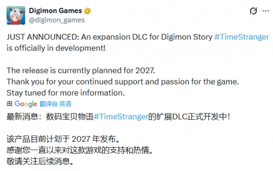 近日,发行商万代南梦宫与开发商Media.Vision宣布,将为《数码宝贝物语:时空异客》推出大型扩展DLC,该DLC预计于2027年正式上线。