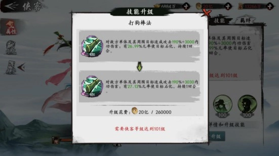 当侠客等级达到一定高度后,若想提升其战斗力,最直接的方式便是提升技能等级以增加技能伤害。不过技能升级对铜币的消耗极大,以黄蓉为例,她的四个技能从1级升至100级,大概需要2600万铜币。