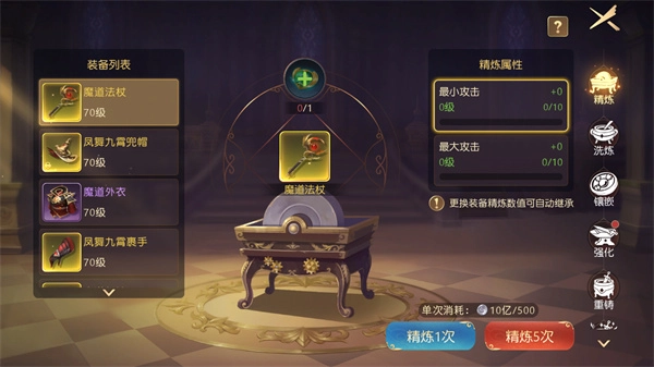 精炼属性:通过消耗核心,可对装备固有的精炼属性进行提升