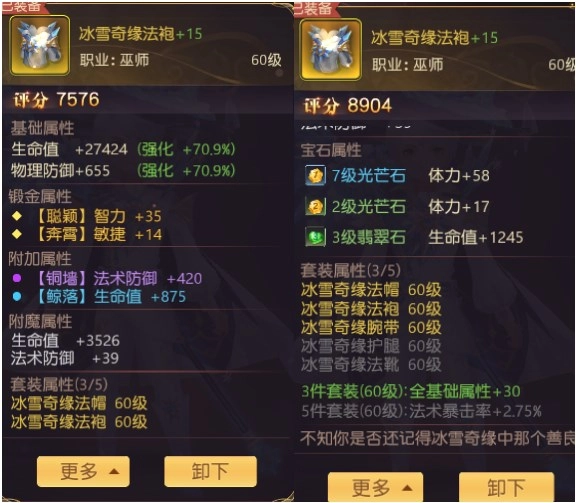 宝石属性:基于装备部位的属性,可通过镶嵌不同属性跟等级的宝石去提升。