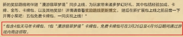 可领取的内容为:4包天马年卡牌包以及1包“漫游翡翠梦境”卡牌包。