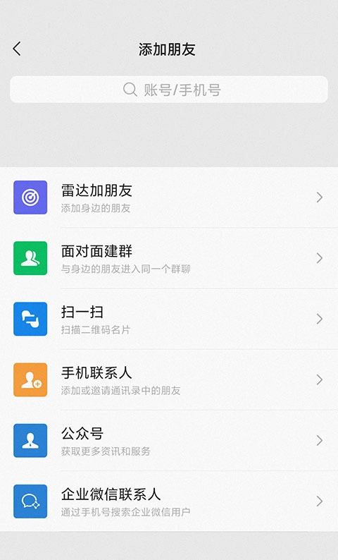 1、这是最简便的建群方式,我们打开微信的添加朋友页面,选择【面对面建群】选项。