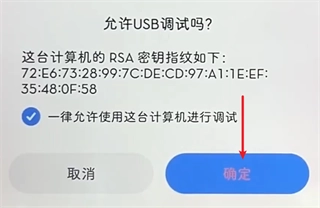 2、在主控机的甲壳虫 ADB 助手上允许权限