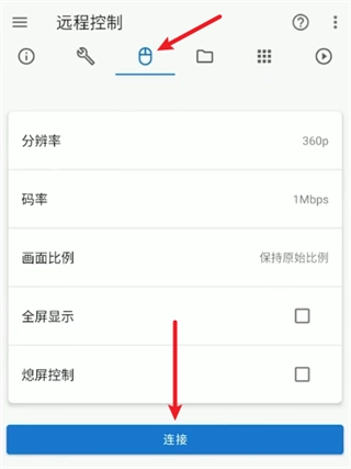 4、进入手机详情页,切换至远程控制选项卡,完成参数设置后,点击下方的连接按钮即可