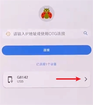 3、在主控机的甲壳虫ADB助手上,输入被控机的IP地址与端口号,然后点击连接按钮完成操作。