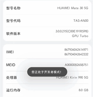 2、不断点击软件版本,下方会提示你已处于开发者模式
