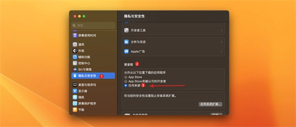 苹果默认仅允许安装来自自家「App Store」的应用,这一限制确实挺严格的!要是你想安装第三方应用,得先进入【系统偏好设置】→【隐私与安全性】→【安全性】里,勾选「App Store 和被认可的开发者」这个选项。而所谓“被认可的开发者”,需要先购买苹果的企业证书给应用签名,再提交给苹果审核通过才行。这对应用来说基本行不通——毕竟过程肯定会修改应用文件,签名证书也就跟着失效了。