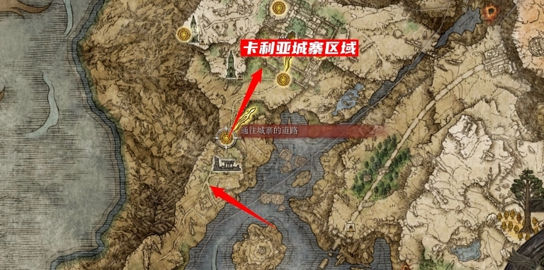 抵达王室领地的废墟后,沿着向上的路径前往卡利亚城寨;在成功击败禁卫骑士罗蕾塔之后,就能抵达菈妮魔法师塔了。