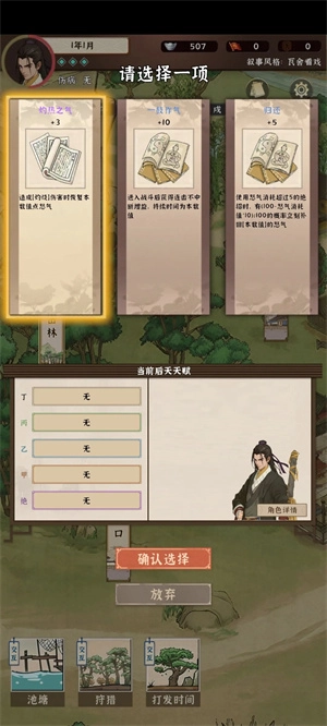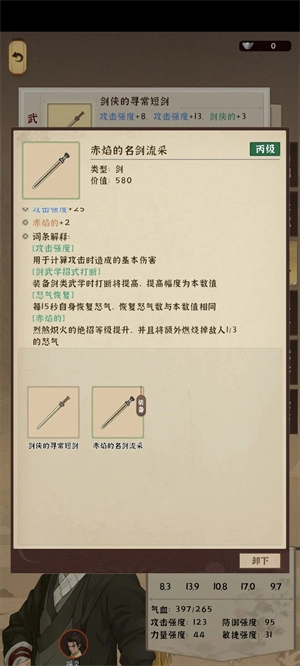 普通攻击会附加灼伤伤害,接下来是关键要点:开局时我们在陆护院那里需要通过存档读档(SL)来获取天风心法(这一点很重要),因为天风心法的武学感悟有机会出现紫色词条“灼热之气”,而我们需要这个词条来回复怒气。