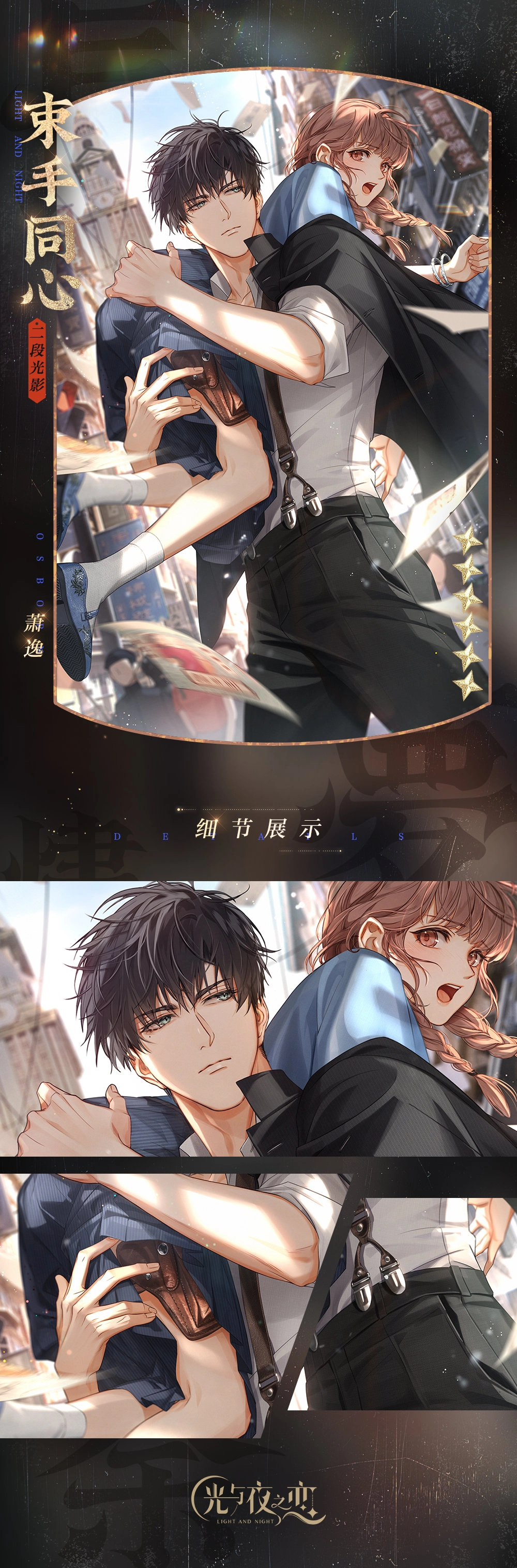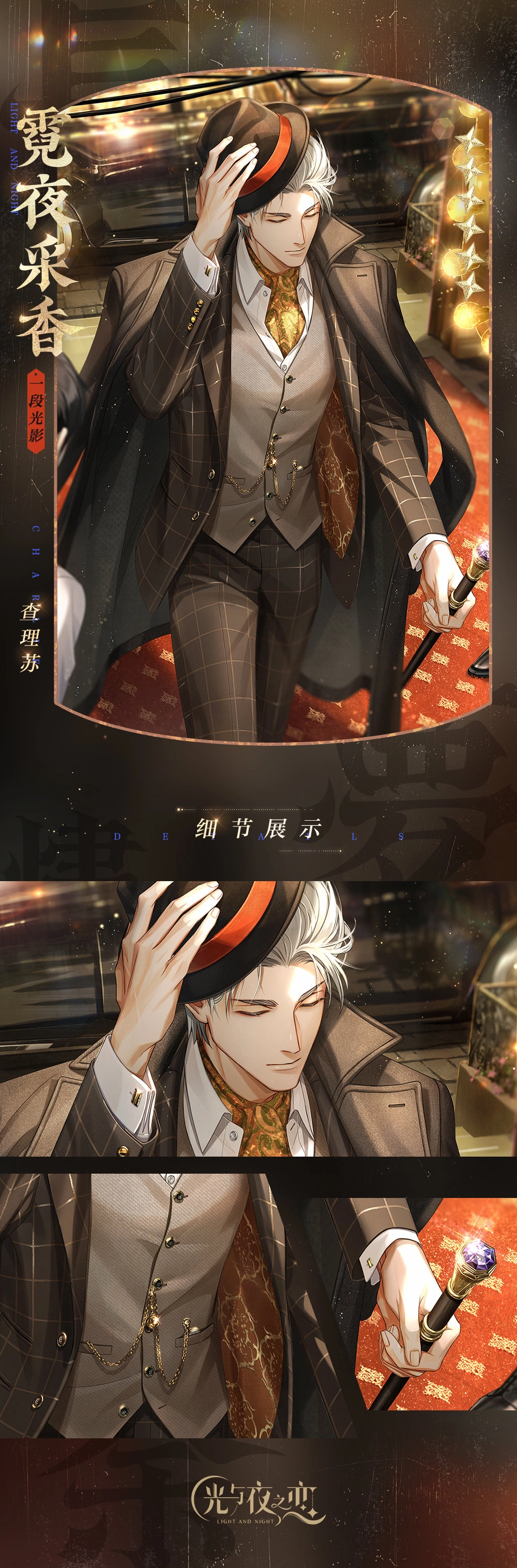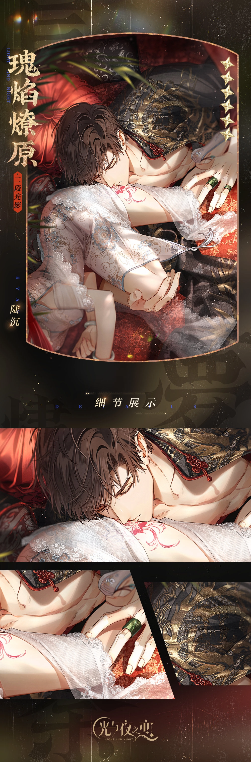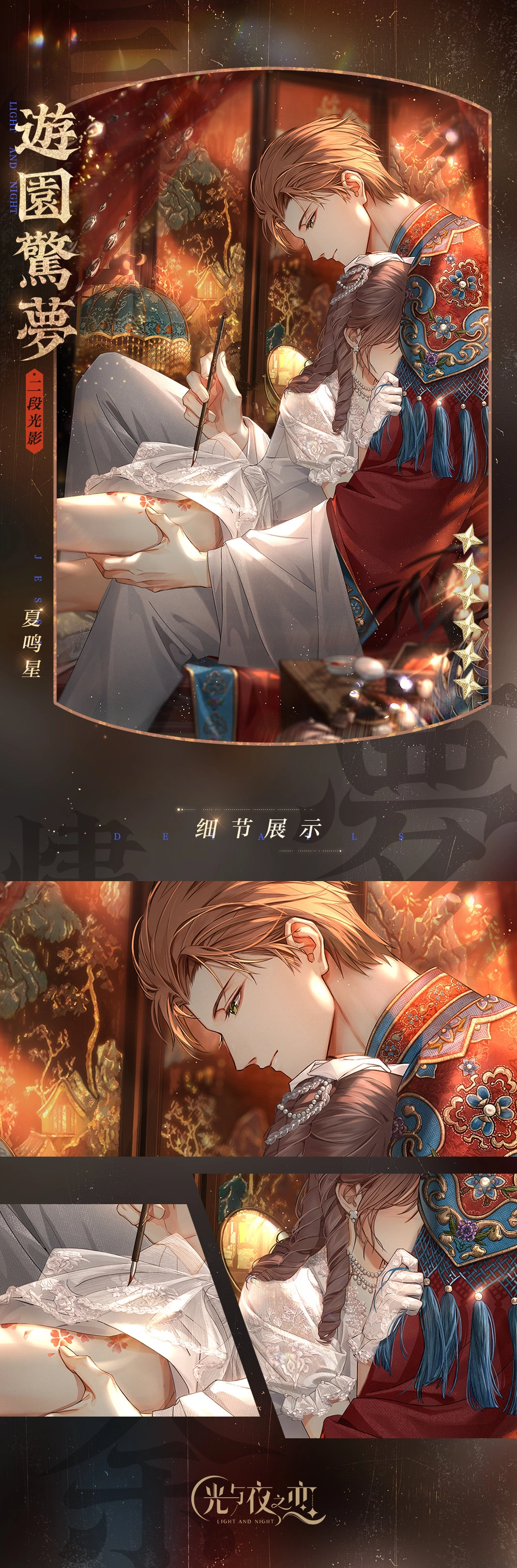本次为大家呈现的是《光与夜之恋》2022年的七夕卡面,此次活动“长梦烬余痕”以民国为主题,各位男主角都换上了民国风格的装扮,让我们与他们一同感受民国风的乞巧节氛围。