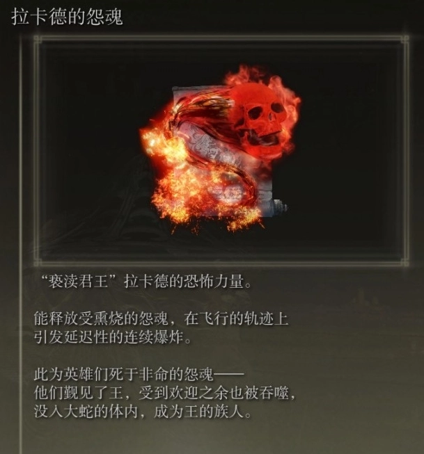 拉卡德的怨魂这一魔法,其飞行轨迹上会触发具有延迟性的连续爆炸,能够造成多段伤害。