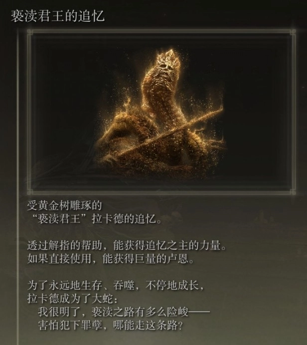 受黄金树雕琢的“亵读君王”拉卡德的追忆。