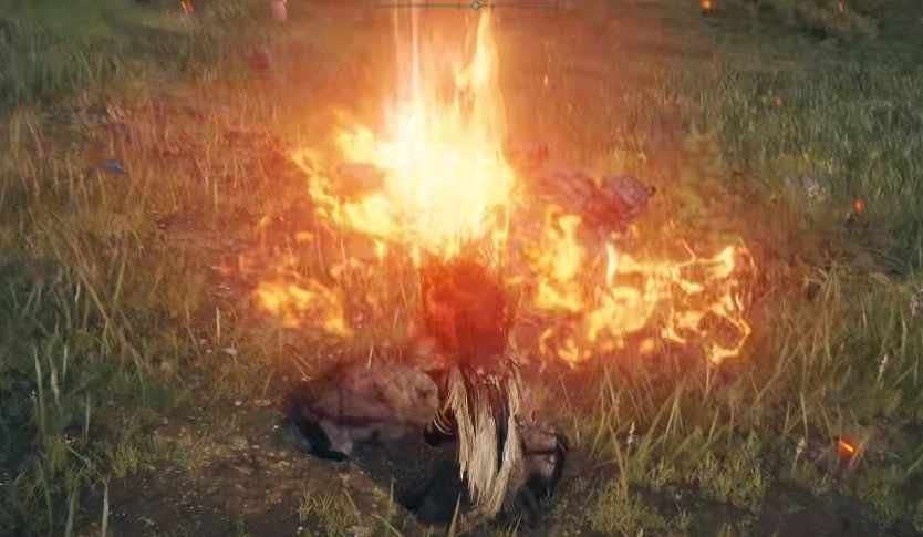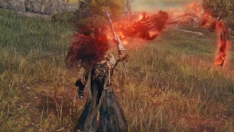 高举圣剑,燃起锯齿状的火焰,再向前释放烈火战技。这火焰能够夺取敌人的血量。