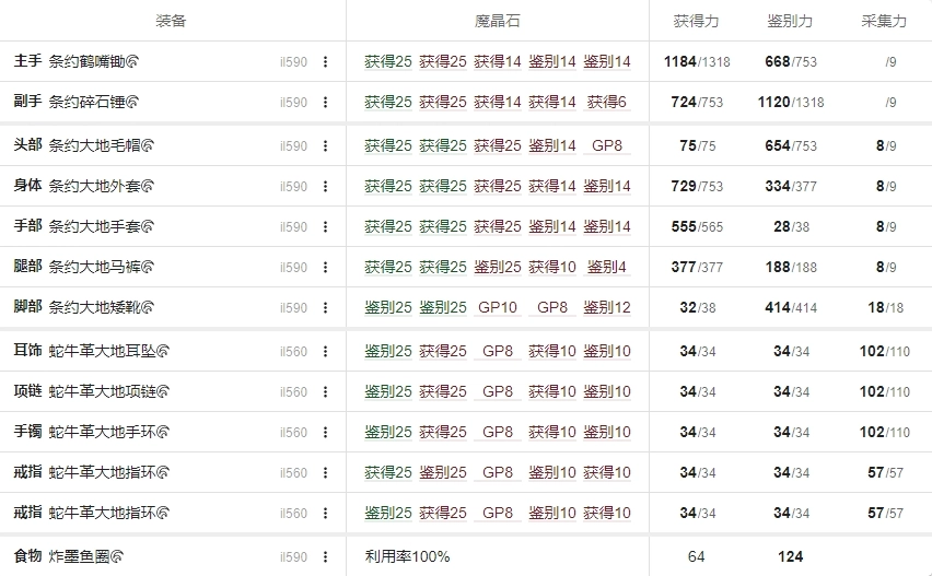 采集数量+3特效需要3990获得力,在满足3600鉴别和900GP的前提下,必须搭配三级部队特效才可能达到,而且一旦这样就完全无法采集升华素材,因此直接放弃3990获得力的特效线。