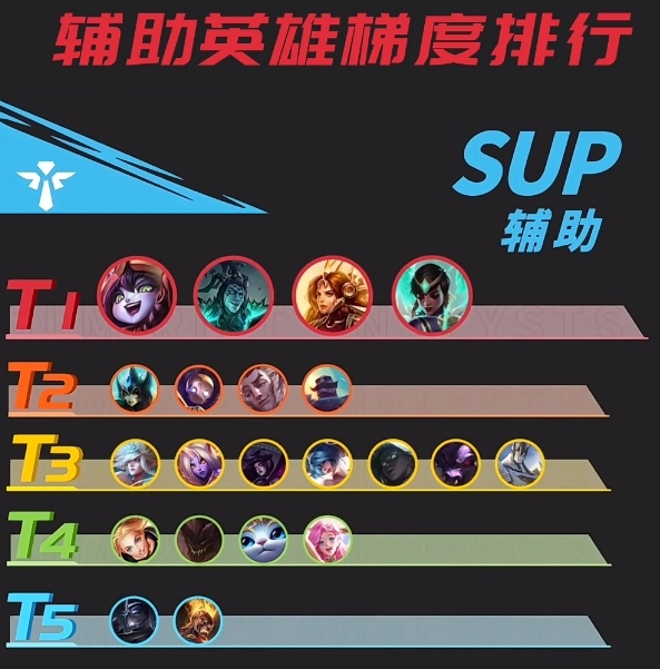 T3辅助英雄包括风女、星妈、莫甘娜、琴女、赛娜、牛头和加里奥。