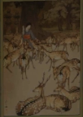 位置在左边第二个,这是最容易的一道题,给出的几幅画里,只有“鹿”的形象和描述最接近。