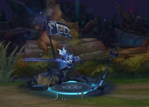 佛耶戈的大招在几个角色里应该算最帅气的之一吧?“让二追三”的通关密码√××√√效果直接拉满,输入密码后召唤师奖杯随即显现,身后的EDG战旗在风中猎猎作响。
