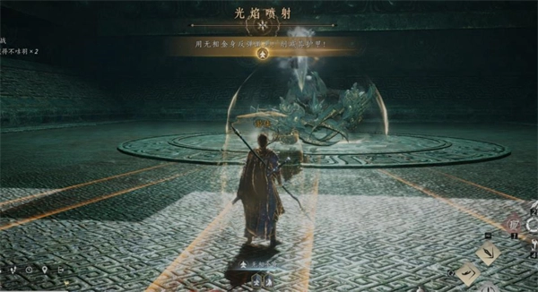 6、光焰领域阶段,BOSS会跃至场地中央,释放四道环绕全场的激光,这些激光会在地面留下痕迹,后续技能触发时痕迹会爆炸并造成高额伤害。此时需继续运用金身技能进行反弹,以此开辟出安全区域,建议尽量将所有激光都反弹回去,从而减少地面上的痕迹残留。