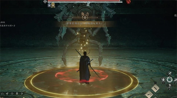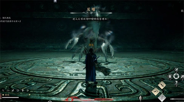 4、角力:BOSS护甲值清空后会释放此技能,届时它会高举双臂准备下砸,游侠可前往指定区域进行卸势操作,该操作至少需要一人参与;若卸势成功,将直接进入QTE环节,未参与卸势的游侠可通过走到首领面前交互加入;QTE成功可使首领瘫痪,若失败,首领将恢复满值护甲值。