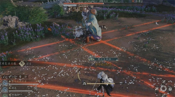 7、锦鲤喷流,BOSS蓄力一段时间后,利用手中锦鲤喷出的水流扫过全场,建议跳开或者躲在BOSS身后。
