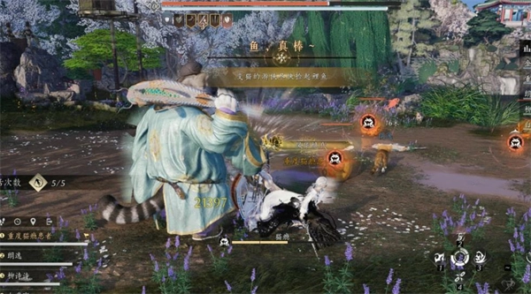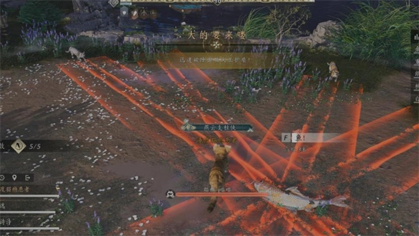 4、喵卫冲锋,BOSS会指挥周边的猫卫冲向玩家,可卸势打断冲锋,被击中会增加猫瘾。注意躲避,或卸势打断猫卫冲锋,控制自身的猫瘾。