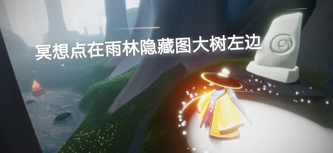 冥想点位于雨林隐藏图里那棵大树的左侧。