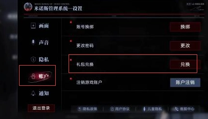 2、在这个位置能看到【账户】模块,你可以在此输入自己所需的各类兑换码。