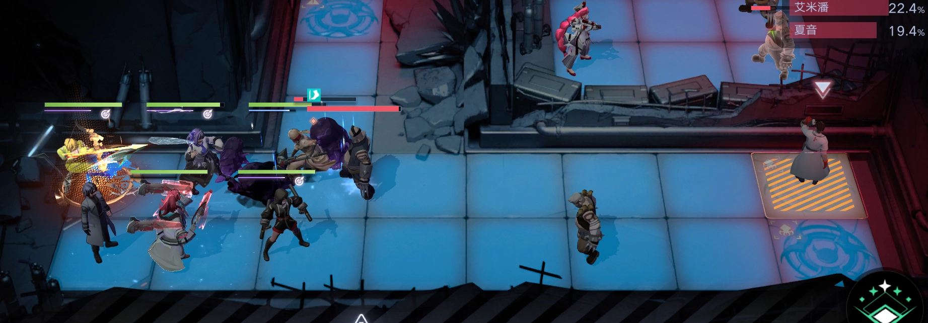 为了应对右侧刷新的医疗兵以及右上角的两个壮汉,我们需要一个单点爆发能力出色且具备破核能力的角色。这里比较推荐性价比高、开局就能获得的艾米潘(也叫EMP),将其练到15级左右就能轻松秒掉医疗兵;要是玩家手里有其他单点爆发型角色,也可以尝试用它们来替代。