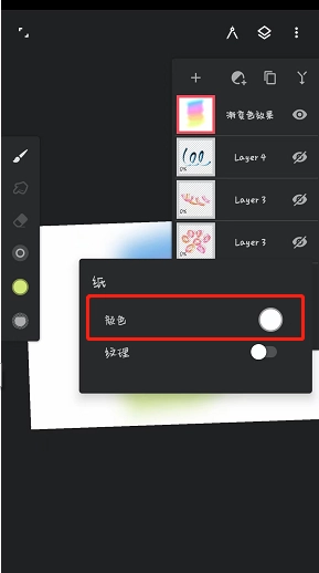 4、在展开的纸张设置界面里,点击颜色选项旁的圆形按钮,就能自由调整颜色了。