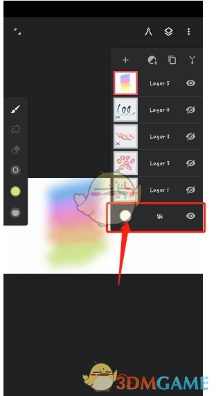 2、点击界面右上角的图层面板,面板最下方有一个背景图层,在Painter软件里它被称为“纸”,点击该图层前方的圆圈图标。