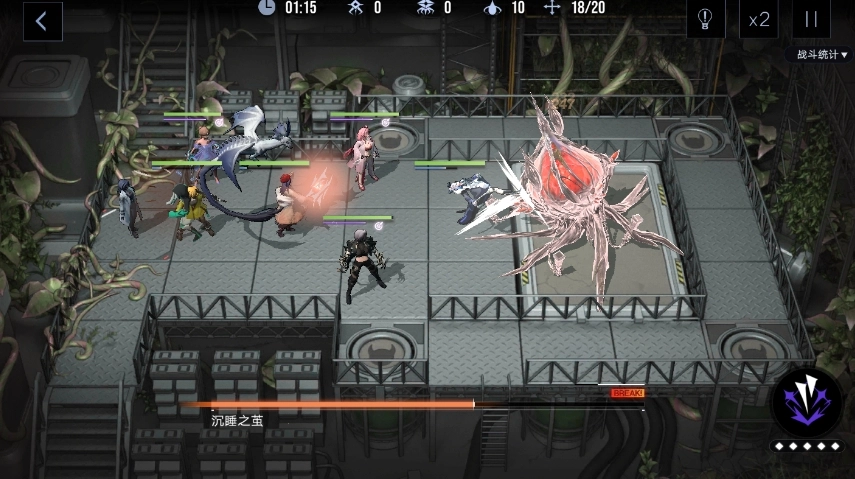 战斗开场还是老样子——BOSS在一旁沉睡,派小怪上前应战。清理杂兵时得留意有没有漏网之鱼,毕竟咱们的输出角色都是只能阻挡一个敌人的类型,得靠防护角色支援,或者及时调整站位,才能避免小怪溜过去。