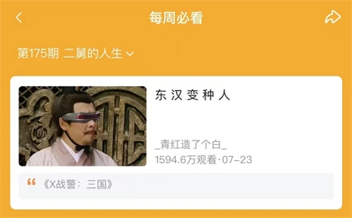 B站UP主“_青红造了个白_”的「神马超」趣味推广视频《东汉变种人》更是引领全站热度,创下1500万播放量,荣登全站排行榜第1,并进入B站第175期每周必看排行榜。