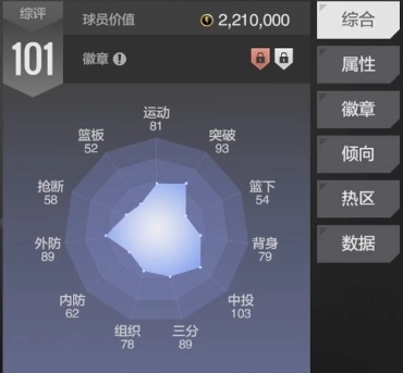 不过在防守端,塔图姆呈现出截然不同的表现,不管是外线防守还是内线防守,他都发挥得比较稳健,尤其是外防数值达到了89分,这使他在应对对方外线球员时能轻松应对,而内防数值也有62分,尽管不算顶尖,但也可以在一定程度上抵挡对方内线球员的进攻,和内防相比,塔图姆更擅长外防,所以在使用他比赛的时候,大家要格外留意他的站位和防守策略,充分利用他的外防优势。