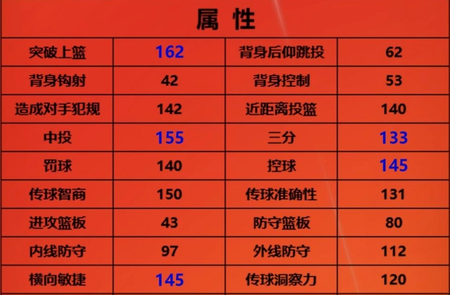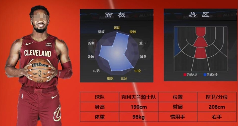 价值百万合同费的米切尔,身高190cm,臂展208cm,作为控球后卫,这样的身材条件十分出色。防守端,他依靠自身身体优势能有效限制对手进攻;进攻方面,米切尔更是全能型球员,中投能力155,三分球133,突破上篮162,突破灌篮150,弹跳也有162。这些全面且优秀的数据,让他成为既能精准投篮又能犀利突破的全能型球员。