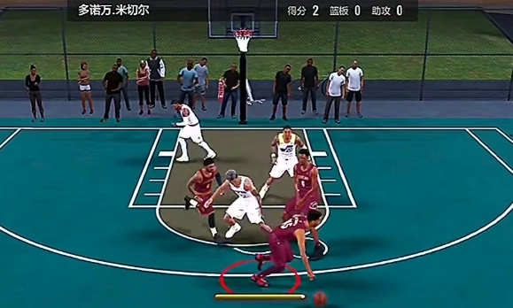 在正式比赛场景里,结合米切尔的技术特性,有一套很值得尝试的战术打法。首先可以灵活运用利拉德极具欺骗性的背身运球技术,具体操作是:当球员右手持球时,需同时按下加速键,再把右摇杆向左斜下方轻推,这个动作能即刻打乱对手的防守节奏,让他们无法预判后续动作;随后衔接一个横拉变向,借助灵活的身体摆动与运球节奏的巧妙变化,进一步干扰对方的防守重心。