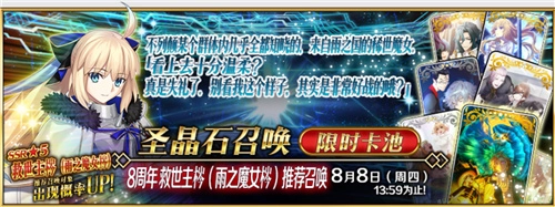 为庆祝《FGO》8周年庆典,游戏自7月18日起推出特别登录活动。8月8日前,挑战「8周年纪念回忆关卡」,可使用「FGO 8th Anniversary 英灵催装兑换券」兑换1张心仪的限时概念礼装「英灵催装」;针对一段时间未登录的御主,在9月5日(周四)3:59前累计登录14天,还能领取30个圣晶石(最多可进行11次圣晶石召唤)及从者养成所需的各类道具!