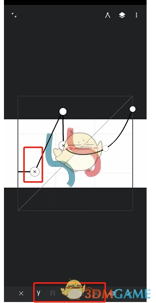 色彩曲线中的“R”代表“red”(红色),对应图像里的红色通道,我们能对画布上的这条曲线进行调整。