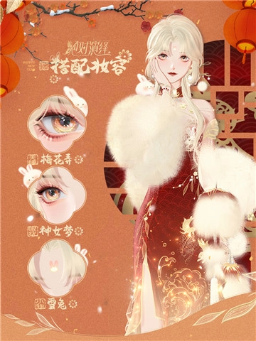 除了雍容大气的旗袍,新妆容同样令人眼前一亮。化妆师以“卯兔”为灵感元素,精心打造出一套既俏皮又端庄的新年专属妆容!橙红色美瞳“梅花弄”自带强大气场,仿佛风雪中不经意的回眸,便能让人感受到那份不容小觑的威慑力。