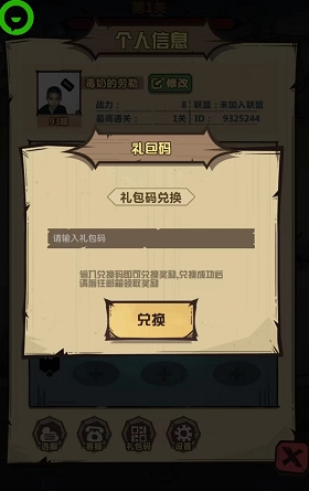 2、进入个人信息页面后,点击下方的礼包兑换码窗口。