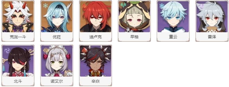 土属性角色包括荒泷一斗与诺艾尔。