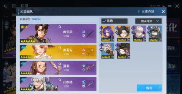这个幻灵阵容的队伍构成较为复杂,包含了四种不同元素的不同类型幻灵。具体来说,夏莉属于风暴元素,维克塔是雷元素,托维特为怒涛元素,薇莉安则是烈焰元素。