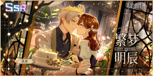 繁梦无尽,微光明辰。将闪耀黎明拥入怀中。9月19日起,使用【女神之泪】在「岁许佳期」活动界面进行启示,莫弈生日SSR【繁梦明辰】的概率将提升,每90次启示内必定能获得概率提升的SSR思绪。