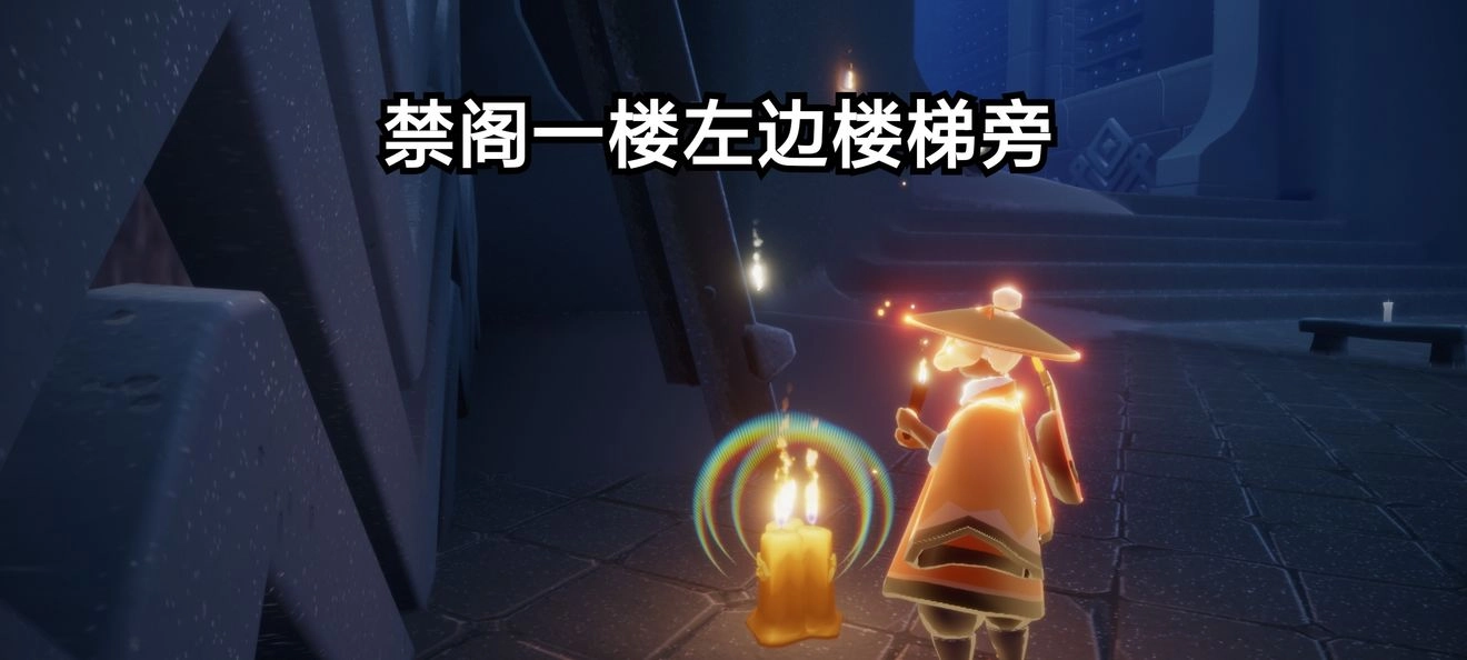 第一个季节蜡烛的位置在禁阁一楼左边楼梯旁边,你可以在那里找到它。