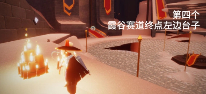 第四个大蜡烛:在霞谷赛道终点左侧的台子处,玩家能在该位置周边找到最后一堆大蜡烛。
