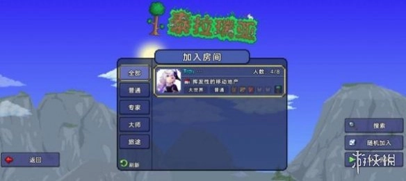 完成角色创建后,点击“加入游戏”按钮。在这里我们可以搜索其他玩家的房间来加入。房间类型分为开放和私密两种:开放房间一般是为所有想要联机的玩家准备的,而私密房间则是专门供好友之间一起游玩使用的。